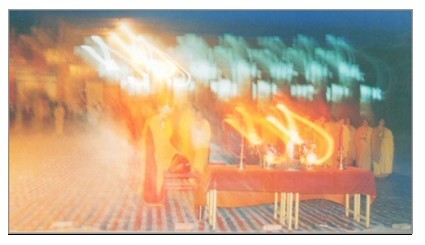 Wu also conducted the Buddhist Dharani Dharma ceremonies, including the one on Nepal in 1994 and Zhouquan Temple of Shanxi province of mainland China. ( Zhouquan Temple Dharma Ceremoney video is online at http://www.youtube.com/watch?v=pHgVmnLcqM8 . The Buddhist song was sung by Wu himself )
