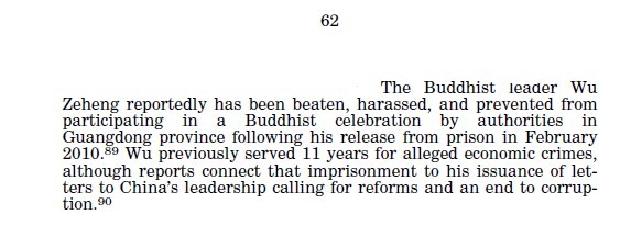 The report cites to the ongoing persecution faced by Wu Zeheng: